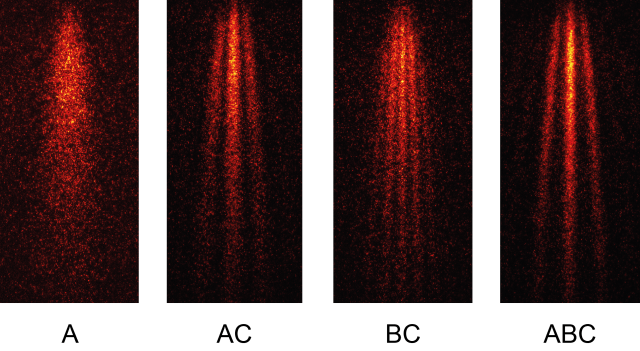 After doing the analysis we indeed saw no pattern which points towards an additional term, namely higher-order interference. In the end, we saw that less than one molecule in a hundred deviates from Born’s rule. This is not a terribly small number. However, this experiment is limited by statistics, that is the count rate of the experiment. The recording of each diffraction pattern took around 8 hours and the experiment was conducted 5 times. The patterns themselves are quite beautiful as you see below.